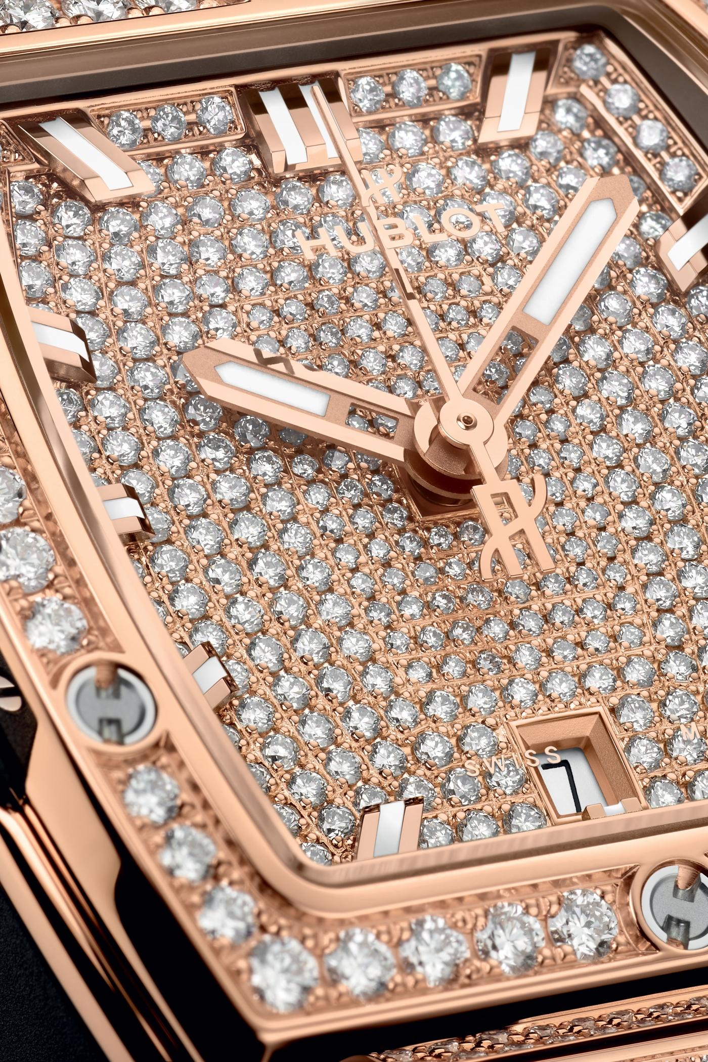 Spirit of Big Bang King Gold Full Pavé Spirit of Big Bang King Gold Full Pavé 32MM ... • Suggested retail price ((% country %)(% tax %)) Add or remove this watch from your wishlist Add or remove this watch from your wishlist 关注宇舶表微信公众号,了解更多详情 There's a QR code below Inquire An alchemy of materials and spirit Share Select how you want to share this page. Link to share: An error occurred. Link copied successfully. BEHIND THE SCENES OUR CRAFTSMANSHIP Materials King Gold As a master of fusion and an alchemist of precious metals, Hublot has developed a new gold color with a warmer shade than the traditional 5N 18K gold. Containing mainly platinum, this exclusive King Gold alloy perfectly lends itself to all elements of polishing and satin finishing. Hublot watches blend the most unexpected materials like high-tech ceramic, rubber and carbon. Learn more Materials Rubber In 1980, Hublot revolutionized watchmaking by combining an 18K gold case with a rubber strap, creating for the first time a new type of watch. This daring alliance established the first expression of the “Art of Fusion” which has become the Manufacture’s sign of recognition. Since then, rubber has emerged as one of Hublot’s flagship materials and an emblem of its modern approach to watchmaking. Learn more DESIGN FIND THE PERFECT STRAP FOR YOUR HUBLOT Use our custom strap configurator EXPLORE Spirit of Big Bang King Gold Full Pavé ... Add or remove this watch from your wishlist ADD TO WISHLIST REMOVE FROM WISHLIST SHARE Open Nav Go to the top technical specifications case reference 682.OX.9000.RX.1604 Size 32 mm case Polished 18k King Gold Set with 96 Diamonds bezel Polished 18K King Gold set with 44 Diamonds water resistance 100m or 10 ATM crystal Sapphire with Anti-reflective Treatment dial Set with 339 Diamonds movement movement HUB1120 Self-winding Movement power reserve 40 Hours strap & clasp strap Black Structured Lined Rubber Straps clasp 18K King Gold and Stainless Steel Deployant Buckle Clasp More in 3-Hands Spirit of Big Bang Titanium Diamonds 39 mm ... • Suggested retail price ((% country %)(% tax %)) Add or remove this watch from your wishlist Spirit of Big Bang Titanium White Diamonds 39 mm ... • Suggested retail price ((% country %)(% tax %)) Add or remove this watch from your wishlist Spirit of Big Bang Steel Diamonds 32 mm ... • Suggested retail price ((% country %)(% tax %)) Add or remove this watch from your wishlist Spirit of Big Bang King Gold Diamonds 32 mm ... • Suggested retail price ((% country %)(% tax %)) Add or remove this watch from your wishlist Spirit of Big Bang King Gold Pavé 32 mm ... • Suggested retail price ((% country %)(% tax %)) Add or remove this watch from your wishlist Spirit of Big Bang Steel Pavé 32 mm ... • Suggested retail price ((% country %)(% tax %)) Add or remove this watch from your wishlist Spirit of Big Bang King Gold White Diamonds 32 mm ... • Suggested retail price ((% country %)(% tax %)) Add or remove this watch from your wishlist Spirit of Big Bang King Gold White Pavé 32 mm ... • Suggested retail price ((% country %)(% tax %)) Add or remove this watch from your wishlist Spirit of Big Bang Steel White Diamonds 32 mm ... • Suggested retail price ((% country %)(% tax %)) Add or remove this watch from your wishlist Spirit of Big Bang Steel White Pavé 32 mm ... • Suggested retail price ((% country %)(% tax %)) Add or remove this watch from your wishlist