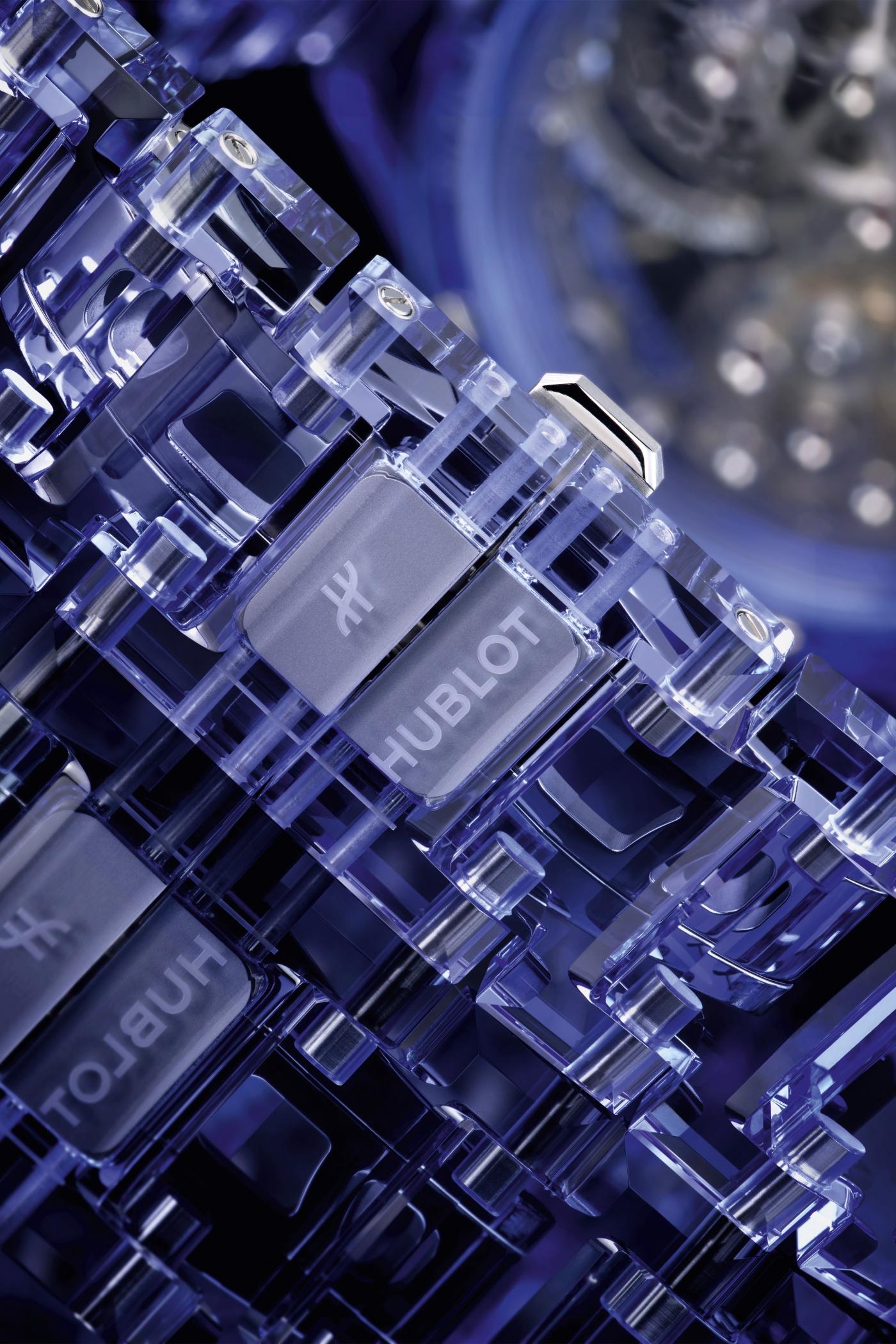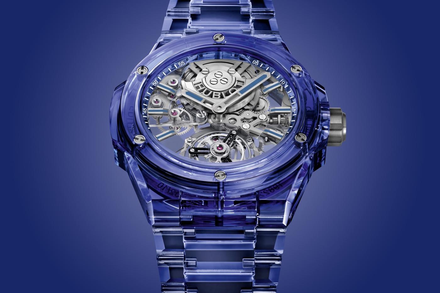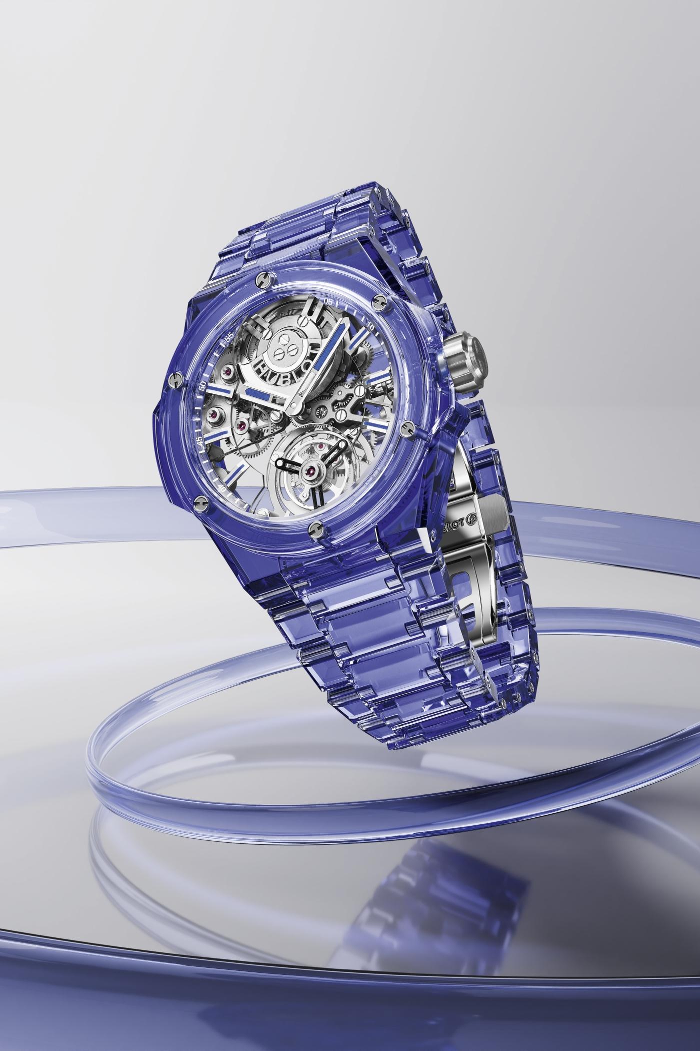 Big Bang Integrated Tourbillon Full Blue Sapphire Big Bang Integrated Tourbillon Full Blue Sapphire 43MM ... • Suggested retail price ((% country %)(% tax %)) Add or remove this watch from your wishlist Add or remove this watch from your wishlist 关注宇舶表微信公众号,了解更多详情 There's a QR code below Add to cart A new frontier is reached in the art of sapphire Share Select how you want to share this page. Link to share: An error occurred. Link copied successfully. Case Polished Blue Sapphire Crystal Strap Blue Sapphire Crystal Water Resistant 30m or 3 ATM Limited Edition 10 See all specs BEHIND THE SCENES OUR CRAFTSMANSHIP Movements AUTOMATIC TOURBILLON Perfectly illustrating Hublot's watchmaking savoir-faire, this movement designed and produced within the Manufacture is distinguished by its automatic winding system with ball bearings, which offers a convenient 3-day power reserve. The design of the new caliber is equally innovative and features a micro-rotor on the dial side, as well as three sapphire bridges. The unique and highly technical layout emphasizes the spectacular aesthetics of the tourbillon and its contemporary design. Learn more Materials Sapphire In search of the perfect fusion between movement and case, Hublot engineers and chemists have researched and developed a transparent material which reveals the heart of the watch, all while being robust enough to effectively protect the mechanism. That’s how the Manufacture has become the expert of synthetic sapphire, a material from which it derives its aesthetic qualities that are unique within watchmaking – transforming each watch into a work of art. Learn more Online and in Boutique exclusive Includes a Hublot complete service. The Hublot Complete Service ensures our select watches continue to move with precision. Learn more technical specifications case reference 455.JL.0120.JL Size 43 mm case Polished Blue Sapphire Crystal bezel Polished Blue Sapphire Crystal with 6 H-shaped Titanium Screws water resistance 30m or 3 ATM crystal Sapphire with Anti-reflective Treatment dial Sapphire Crystal Dial movement movement HUB6035 Manufacture Automatic Tourbillon Movement power reserve 72 Hours strap & clasp strap Blue Sapphire Crystal clasp Titanium Deployant Buckle Clasp BRACELET ADJUSTMENTFor maximum comfort, we recommend adjusting the bracelet to fit your wrist.You can have this adjustment done in-store.Alternatively, provide us with your wrist size, and we'll adjust it for you. More in Tourbillon Big Bang Integrated Tourbillon Full Carbon 43 mm ... • Suggested retail price ((% country %)(% tax %)) Add or remove this watch from your wishlist Big Bang Integrated Tourbillon Full Purple Sapphire 43 mm ... • Suggested retail price ((% country %)(% tax %)) Add or remove this watch from your wishlist Big Bang Integrated Tourbillon Full Blue Sapphire ... Add or remove this watch from your wishlist ADD TO WISHLIST REMOVE FROM WISHLIST SHARE Open Nav Go to the top