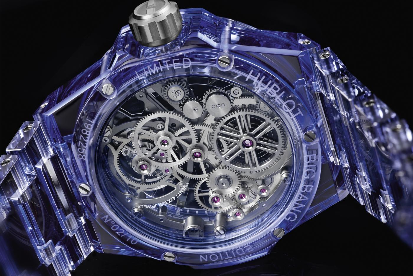 Materials Sapphire In search of the perfect fusion between movement and case, Hublot engineers and chemists have researched and developed a transparent material which reveals the heart of the watch, all while being robust enough to effectively protect the mechanism. That’s how the Manufacture has become the expert of synthetic sapphire, a material from which it derives its aesthetic qualities that are unique within watchmaking – transforming each watch into a work of art. Learn more