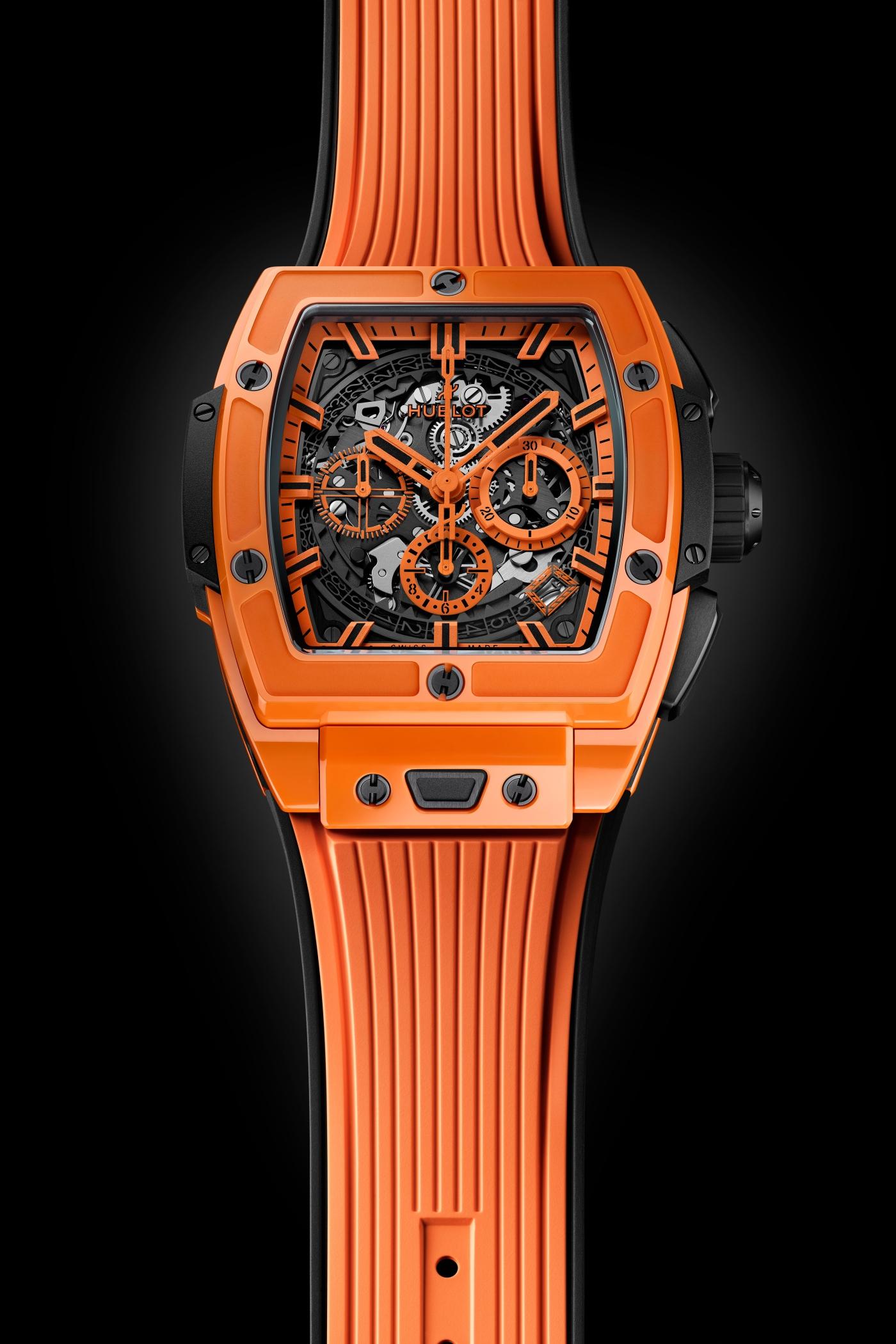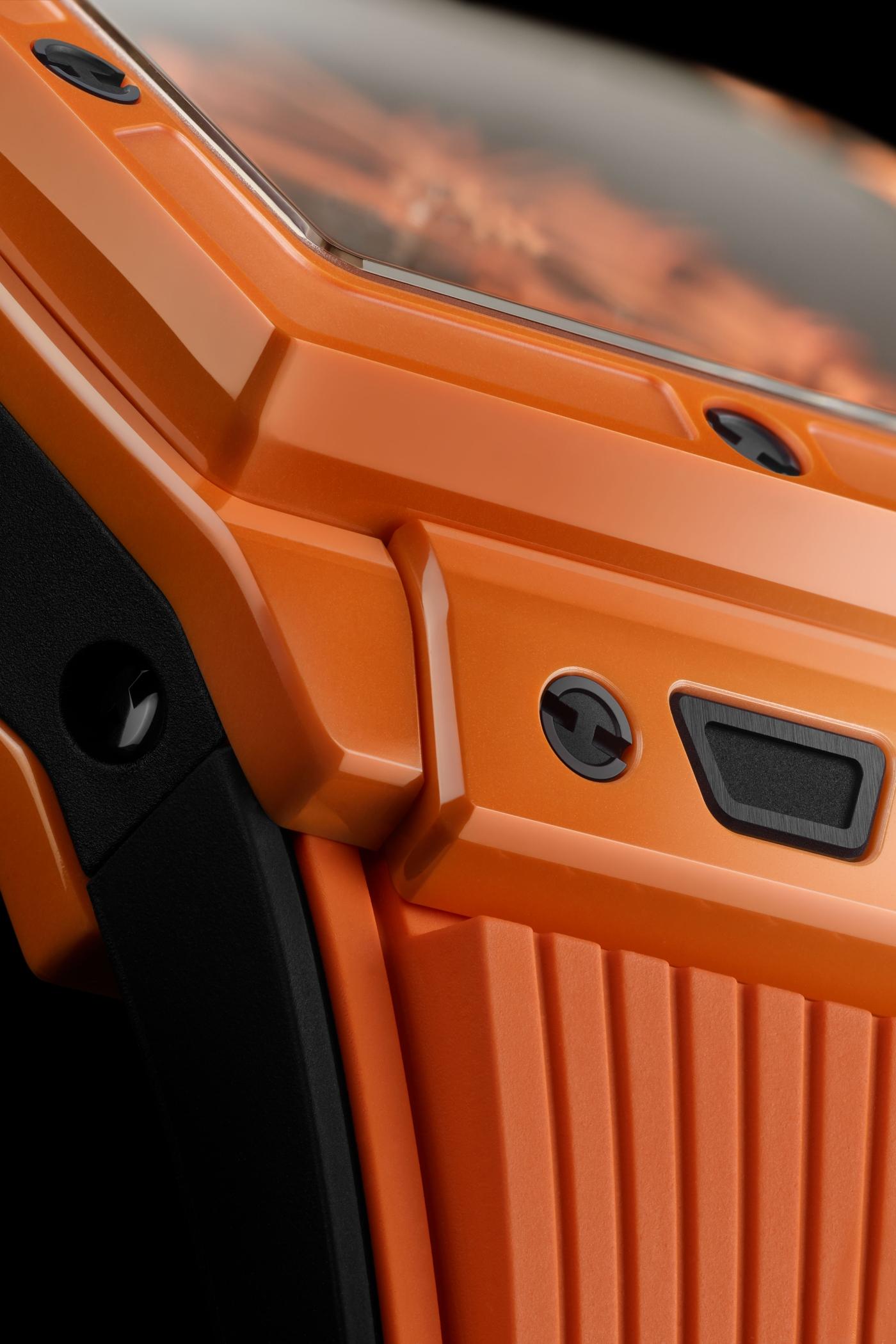 Spirit of Big Bang Orange Ceramic NEW Spirit of Big Bang Orange Ceramic 42MM ... • Suggested retail price ((% country %)(% tax %)) Add or remove this watch from your wishlist Add or remove this watch from your wishlist 关注宇舶表微信公众号,了解更多详情 There's a QR code below Add to cart Share Select how you want to share this page. Link to share: An error occurred. Link copied successfully. BEHIND THE SCENES OUR CRAFTSMANSHIP Materials Ceramic For Hublot, materials are an integral part of their watches’ design. They must complement their design, while protecting their mechanism and withstand the test of time. As such, the Manufacture has chosen to use high-tech ceramic for certain bezels and cases; it is an ultra-tough and almost entirely scratch-proof material (apart from the diamond) with a base of zirconium sintered at very high temperatures. Learn more Movements HUB4700 The HUB4700 caliber is the successor to the famous El Primero caliber - the first chronograph with an integrated style automatic winding (1969), which was also the first mechanical chronograph equipped with a 5 Hz frequency (36’000 alt/h) allowing an accuracy of 1/10th of a second. In a perfect fusion between tradition and innovation, this entirely skeletonized movement is now equipped with silicon regulating element ensuring avant-garde performances, precision and reliability. Learn more DESIGN FIND THE PERFECT STRAP FOR YOUR HUBLOT Use our custom strap configurator EXPLORE Spirit of Big Bang Orange Ceramic ... Add or remove this watch from your wishlist ADD TO WISHLIST REMOVE FROM WISHLIST SHARE Open Nav Go to the top Online and in Boutique exclusive Includes a Hublot complete service. The Hublot Complete Service ensures our select watches continue to move with precision. Learn more technical specifications case reference 642.CU.0110.RX Size 42 mm case Polished Orange Ceramic bezel Polished Orange Ceramic water resistance 100m or 10 ATM crystal Sapphire with Anti-reflective Treatment dial Sapphire Crystal Dial movement movement HUB4700 Self-winding Skeleton Chronograph Movement power reserve Approx. 50 Hours strap & clasp strap Black and Orange Structured Lined Rubber Straps clasp Black ceramic and Black Titane Deployant Buckle More in Chronograph Spirit of Big Bang Black Magic 42 mm ... • Suggested retail price ((% country %)(% tax %)) Add or remove this watch from your wishlist Spirit of Big Bang King Gold 42 mm ... • Suggested retail price ((% country %)(% tax %)) Add or remove this watch from your wishlist Spirit of Big Bang King Gold Ceramic 42 mm ... • Suggested retail price ((% country %)(% tax %)) Add or remove this watch from your wishlist Spirit of Big Bang King Gold Diamonds 42 mm ... • Suggested retail price ((% country %)(% tax %)) Add or remove this watch from your wishlist Spirit of Big Bang King Gold Pavé 42 mm ... • Suggested retail price ((% country %)(% tax %)) Add or remove this watch from your wishlist Spirit of Big Bang King Gold Rainbow 42 mm ... • Suggested retail price ((% country %)(% tax %)) Add or remove this watch from your wishlist Spirit of Big Bang Titanium 42 mm ... • Suggested retail price ((% country %)(% tax %)) Add or remove this watch from your wishlist Spirit of Big Bang Titanium Ceramic 42 mm ... • Suggested retail price ((% country %)(% tax %)) Add or remove this watch from your wishlist Spirit of Big Bang Titanium Diamonds 42 mm ... • Suggested retail price ((% country %)(% tax %)) Add or remove this watch from your wishlist Spirit of Big Bang Titanium Pavé 42 mm ... • Suggested retail price ((% country %)(% tax %)) Add or remove this watch from your wishlist