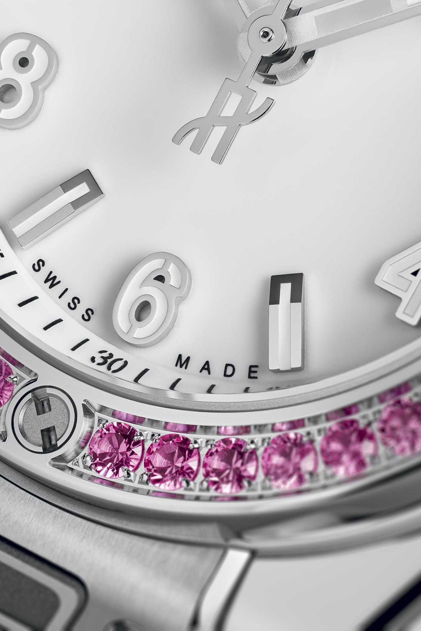Big Bang系列 “一键式”悦彩粉色精钢腕表 全新 Big Bang系列 “一键式”悦彩粉色精钢腕表 33毫米 ... • 建议零售价 ((% country %)(% tax %)) 将该腕表添加至心愿单或从心愿单中删除 将该腕表添加至心愿单或从心愿单中删除 关注宇舶表微信公众号,了解更多详情 见下方二维码 加入购物袋 分享 选择分享当前页面的方式。 分享链接: 出现错误。 已成功复制链接。 Big Bang系列 “一键式”悦彩粉色精钢腕表 ... 将该腕表添加至心愿单或从心愿单中删除 添加至心愿单 从心愿单删除 分享 Open Nav Go to the top 幕后花絮 我们的工艺 机芯 开创性腕表机芯 “融合的艺术”在机芯上展现得淋漓尽致。从简单的腕表,到具有颠覆性的制表理念,宇舶表创造出一系列不同凡响的“表厂自制”机芯。Unico自动计时码表的特有结构非凡出众。Meca-10机芯、陀飞轮和MP-11机芯的动力储备更是令人叹为观止。配备11个发条盒的MP-05机芯采用革命性的动力方式,能够提供50天的自动动力。秉持“融合的艺术”,宇舶表将功能、结构和设计天衣无缝地融合在一起。 了解更多 材质 精钢 宇舶表仅使用316L型医用级不锈钢,以铁为基础金属,融合铬的耐腐蚀特性和镍优异的机械强度。这种稳定耐用的合金材料能够从容应对日常生活中的所有情境。从美学角度出发,这种材料易于“装饰”,抛光或是缎面打磨皆可,而后一种工艺可令饰面呈现出细腻变化。 了解更多 设计 为您的宇舶表作品寻找专属表带 使用我们的定制表带配置器 探索 技术规格 表壳 型号 485.SP.2210.RX.1233 尺寸 33 毫米 表壳 缎面抛光精钢 表圈 抛光精钢镶嵌36颗粉色蓝宝石 防水性能 100米或10ATM 表镜 防眩处理蓝宝石水晶表镜 表盘 亮白 机芯 机芯 HUB1120 自动上链机芯 动力储存 40小时 表带和表扣 表带 白色和粉色带衬里橡胶表带。备用表带:全粉色。 表扣 精钢折叠表扣 更多信息 3指针腕表 Big Bang系列 一键式精钢镶钻 39 mm ... • 建议零售价 ((% country %)(% tax %)) 将该腕表添加至心愿单或从心愿单中删除 Big Bang系列 一键式精钢白色镶钻 39 mm ... • 建议零售价 ((% country %)(% tax %)) 将该腕表添加至心愿单或从心愿单中删除 Big Bang系列 一键式王金镶钻腕表 33 mm ... • 建议零售价 ((% country %)(% tax %)) 将该腕表添加至心愿单或从心愿单中删除 Big Bang系列 一键式王金密镶腕表 33 mm ... • 建议零售价 ((% country %)(% tax %)) 将该腕表添加至心愿单或从心愿单中删除 Big Bang系列 一键式王金白色镶钻腕表 33 mm ... • 建议零售价 ((% country %)(% tax %)) 将该腕表添加至心愿单或从心愿单中删除 Big Bang系列 一键式王金白色密镶腕表 33 mm ... • 建议零售价 ((% country %)(% tax %)) 将该腕表添加至心愿单或从心愿单中删除 Big Bang系列 一键式精钢镶钻腕表 33 mm ... • 建议零售价 ((% country %)(% tax %)) 将该腕表添加至心愿单或从心愿单中删除 Big Bang系列 一键式精钢密镶腕表 33 mm ... • 建议零售价 ((% country %)(% tax %)) 将该腕表添加至心愿单或从心愿单中删除 Big Bang系列 一键式精钢白色镶钻腕表 33 mm ... • 建议零售价 ((% country %)(% tax %)) 将该腕表添加至心愿单或从心愿单中删除 Big Bang系列 一键式精钢白色密镶腕表 33 mm ... • 建议零售价 ((% country %)(% tax %)) 将该腕表添加至心愿单或从心愿单中删除
